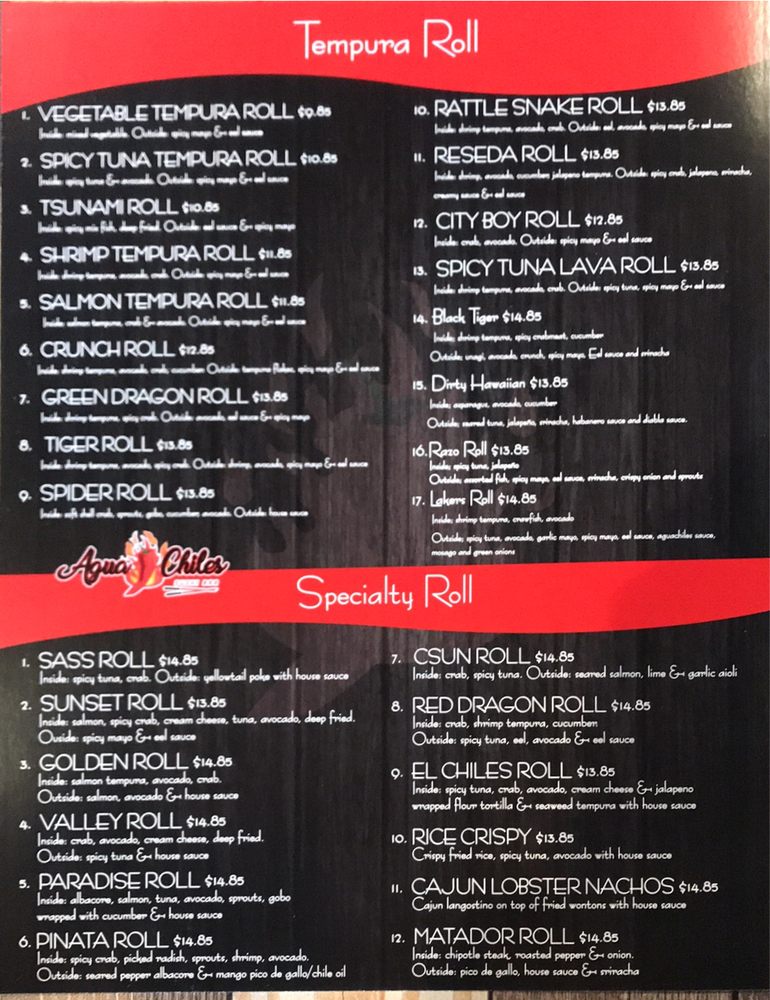 Welcome to Agua Chiles Sushi Bar, where the vibrant fusion of Japanese and Latin flavors creates a unique sushi experience. Nestled in Northridge, CA, this trendy spot boasts an inviting atmosphere that effortlessly blends contemporary chic with cultural flair from both cuisines.